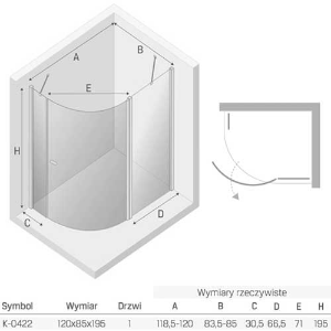 New Trendy New Soleo kabina prysznicowa asymetryczna z pojedynczymi drzwiami otwieranymi na zewnątrz, 120x85x195 cm