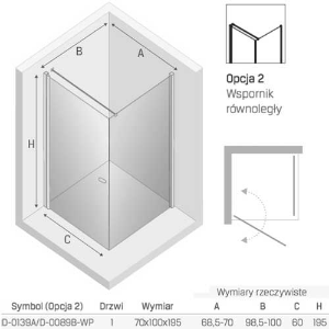 - Montaż z listwą progową lub bez - listwa progowa kabiny prysznicowej jest elementem pomocnym w zachowaniu lepszej szczelności, jednak jej montaż nie jest koniecznością. Decydując się na wariant montażu bez listwy należy zastosować dolną uszczelkę drzwi z przedłużonym listkiem, aby pomiędzy drzwiami a podłogą nie pozostała szczelina. Listwa progowa oraz dodatkowa uszczelka znajdują się w zestawie z pozostałymi częściami kabiny prysznicowej. Użytkownik ma możliwość jej montażu w każdej chwili bez konieczności podejmowania decyzji w momencie zakupu