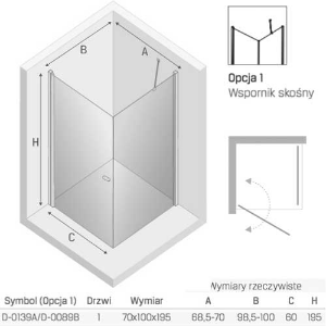 - Montaż z listwą progową lub bez - listwa progowa kabiny prysznicowej jest elementem pomocnym w zachowaniu lepszej szczelności, jednak jej montaż nie jest koniecznością. Decydując się na wariant montażu bez listwy należy zastosować dolną uszczelkę drzwi z przedłużonym listkiem, aby pomiędzy drzwiami a podłogą nie pozostała szczelina. Listwa progowa oraz dodatkowa uszczelka znajdują się w zestawie z pozostałymi częściami kabiny prysznicowej. Użytkownik ma możliwość jej montażu w każdej chwili bez konieczności podejmowania decyzji w momencie zakupu