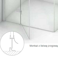 - Montaż z listwą progową lub bez - listwa progowa kabiny prysznicowej jest elementem pomocnym w zachowaniu lepszej szczelności, jednak jej montaż nie jest koniecznością. Decydując się na wariant montażu bez listwy należy zastosować dolną uszczelkę drzwi z przedłużonym listkiem, aby pomiędzy drzwiami a podłogą nie pozostała szczelina. Listwa progowa oraz dodatkowa uszczelka znajdują się w zestawie z pozostałymi częściami kabiny prysznicowej. Użytkownik ma możliwość jej montażu w każdej chwili bez konieczności podejmowania decyzji w momencie zakupu