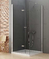 Kabina prysznicowa z pojedynczymi drzwiami składanymi, uchylnymi otwieranymi na zewnątrz i do wewnątrz. Zawias kolumnowy zastosowany w drzwiach NEW SOLEO zapewnia niezwykle szerokie wejście.