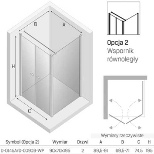 - Montaż z listwą progową lub bez - listwa progowa kabiny prysznicowej jest elementem pomocnym w zachowaniu lepszej szczelności, jednak jej montaż nie jest koniecznością. Decydując się na wariant montażu bez listwy należy zastosować dolną uszczelkę drzwi z przedłużonym listkiem, aby pomiędzy drzwiami a podłogą nie pozostała szczelina. Listwa progowa oraz dodatkowa uszczelka znajdują się w zestawie z pozostałymi częściami kabiny prysznicowej. Użytkownik ma możliwość jej montażu w każdej chwili bez konieczności podejmowania decyzji w momencie zakupu