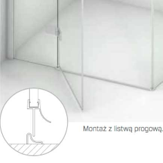 - Montaż z listwą progową lub bez - listwa progowa kabiny prysznicowej jest elementem pomocnym w zachowaniu lepszej szczelności, jednak jej montaż nie jest koniecznością. Decydując się na wariant montażu bez listwy należy zastosować dolną uszczelkę drzwi z przedłużonym listkiem, aby pomiędzy drzwiami a podłogą nie pozostała szczelina. Listwa progowa oraz dodatkowa uszczelka znajdują się w zestawie z pozostałymi częściami kabiny prysznicowej. Użytkownik ma możliwość jej montażu w każdej chwili bez konieczności podejmowania decyzji w momencie zakupu