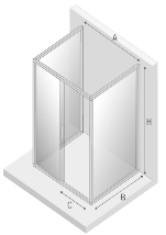 A 118,5 cm , B 88,5-90 cm , C 52 cm , H 190 cm