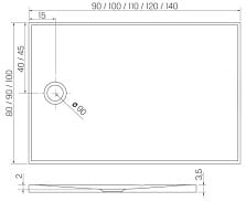 Otwór odpływowy brodzika przystosowany do standardowego syfonu o średnicy 90 mm.
