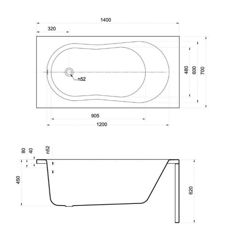 - Odpływ boczny przy krótszym boku