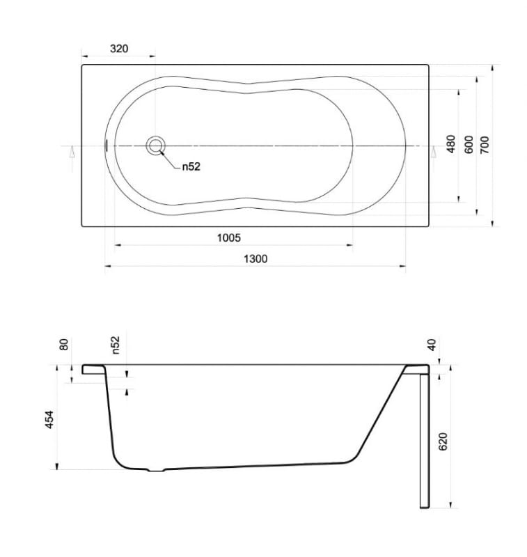 - Odpływ boczny przy krótszym boku