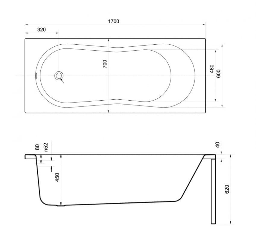 - Odpływ boczny przy krótszym boku
