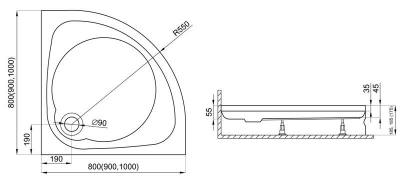 NOWY STYL Brodzik akrylowy półokrągły 80x80x5cm
