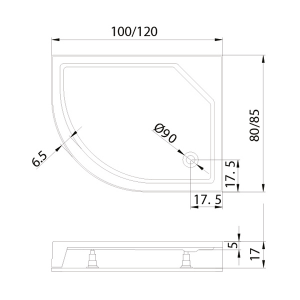 Otwór odpływowy brodzika przystosowany do standardowego syfonu o średnicy 52 mm.