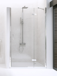 Drzwi prysznicowe pojedyncze uchylne. Drzwi NEW RENOMA wyróżniają się wyjątkową lekką, ale stabilną konstrukcją. Zawiasy unoszące drzwi chronią uszczelki i zapewniają łatwe otwieranie.