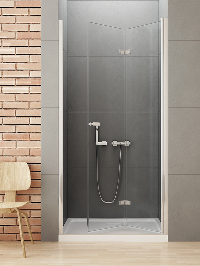 Drzwi prysznicowe pojedyncze składane na zewnątrz i do wewnątrz. Zawias kolumnowy zastosowany w drzwiach NEW SOLEO zapewnia niezwykle szerokie wejście.