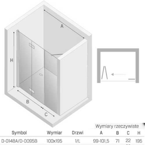 A 109-111,5 cm , B 71 cm , C 32 cm , H 195 cm