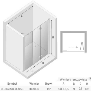 A 119-121,5 cm , B 91 cm , C 22 cm , H 195 cm