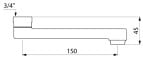 Wylewka H.45 L.150 z wmontowanym sitkiem wypływowym i nakrętką 3/4".