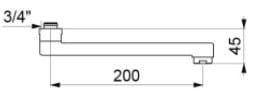 Wylewka H.45 L.200 z wmontowanym sitkiem wypływowym i nakrętką 3/4".
