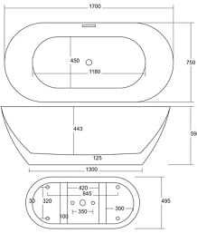 OLVENA Wanna wolnostojąca 170x75 cm z wykończeniem białym