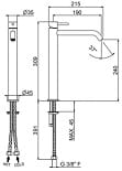 Wysokość baterii 30,9cm, długość wylewki 19cm.