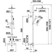 W zestawie: bateria termostatyczna, wąż 150 cm, słuchawka, deszczownica Ø25 cm.