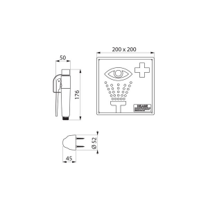 - Znormalizowany znak bezpieczeństwa pierwszej pomocy „oczomyjka”.