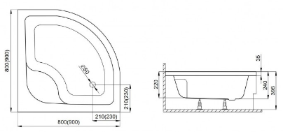 PAKO Brodzik akrylowy półokrągły głęboki 90x90x24 cm