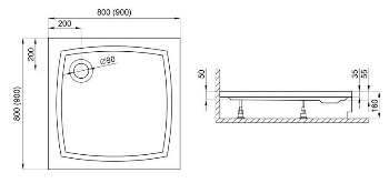 PATIO II Brodzik akrylowy kwadratowy 80 x 80 x 5 cm
