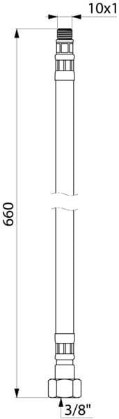 Wężyki W3/8" Z10x1 L.660 mm w osłonie z plecionego Inoxu, wnętrze z PEX Ø6 do zasilania armatury sanitarnej.