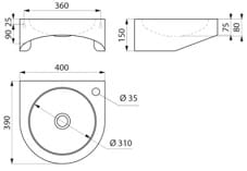 Wewnętrzna średnica umywalki: 310 mm.