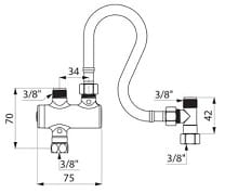 Chromowany korpus, przyłącze wody ciepłej W 3/8", przyłącze wody zimnej Z 3/8", wyjście wody zmieszanej Z 3/8".