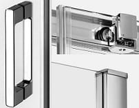 - W produktach tej kolekcji zastosowano rozwiązanie, umożliwiające bezpieczne wypięcie drzwi. Wyposażenie kabin w tego typu system ułatwia ich montaż oraz pielęgnację. Minimalistyczny stabilizator harmonijnie współgra z dolną krawędzią drzwi. Element podpiera je podczas otwierania i zamykania.