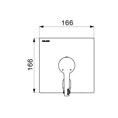 Płyta 166 x 166 mm z błyszczącego Inoxu, z wyjściem ściennym w postaci kolanka.