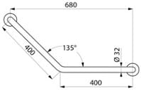 Poręcz kątowa 135°, Ø32 , 400 x 400 mm , Inox satynowy