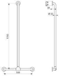 Poręcz natryskowa w kształcie litery „T” z przesuwną pionową poręczą Ø32 dla osób niepełnosprawnych.