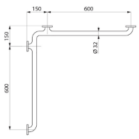 Poręcz natryskowa kątowa, pozioma Ø32 do siedziska natryskowego dla osób niepełnosprawnych.