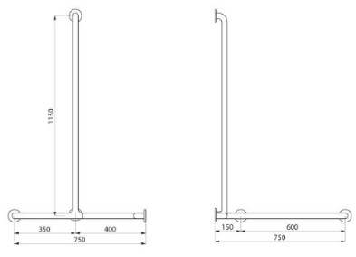 Poręcz natryskowa poziomo-pionowa Ø32 dla osób niepełnosprawnych.