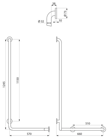 Odległość między ścianą a poręczą 38 mm: minimalne wymiary uniemożliwiają przejście przedramienia między ścianą a poręczą chroniąc użytkownika przed złamaniem w przypadku upadku.