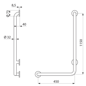 Poręcz natryskowa w kształcie litery „L” Ø32, dla osób niepełnosprawnych. Model lewy.