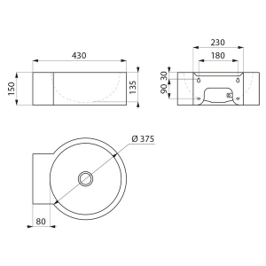 Średnica wewnętrzna umywalki: 320 mm.