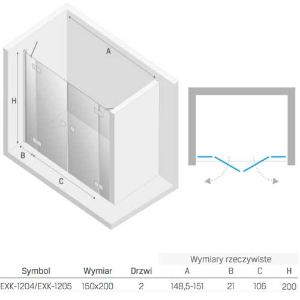New Trendy Reflexa drzwi prysznicowe podwójneuchylne na zewnątrz 170x200 cm wnękowe