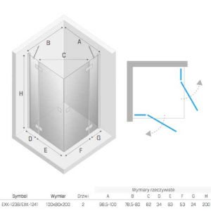 New Trendy Reflexa kabina prysznicowa prostokątna z podwójnymi drzwiami uchylnymi 100x80x200 cm