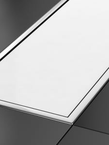 - Estetyczna i funkcjonalna rynienka - zapobiega ściekaniu wody z drzwi kabiny na podłogę. Rynienka jest estetyczną listwą montowaną na dolnej krawędzi drzwi kabiny