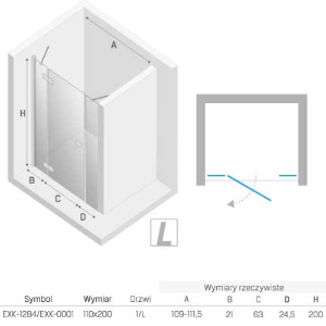 New Trendy Reflexa PLUS drzwi prysznicowe z dwiema ściankami stałymi z uchylnymi drzwiami na zewnątrz 110x200 cm