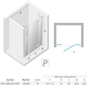 New Trendy Reflexa PLUS drzwi prysznicowe z dwiema ściankami stałymi z uchylnymi drzwiami na zewnątrz 110x200 cm