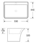RIBERA Umywalka wisząca 44x53 cm , z otworem na baterię , biała