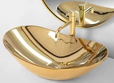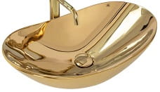 Złota umywalka ceramiczna nablatowa zewnątrz i wewnątrz w kolorze złotym , o oryginalnym i niepowtarzalnym wyglądzie.