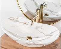 Umywalka ceramiczna nablatowa w kolorze imitacji kamienia , o oryginalnym i niepowtarzalnym wyglądzie.