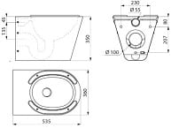 Wisząca miska ustępowa WC, 360 x 350 x 535 mm.