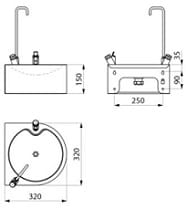 SD Poidełko ścienne , zawór do płukania ust i wylewką C , stal nierdzewna
