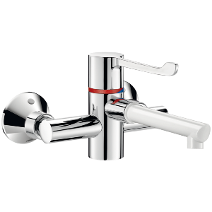 DELABIE SECURITHERM Sekwencyjna, ścienna bateria termostatyczna do zlewu, z zatrzaskową wylewką BIOCLIP.