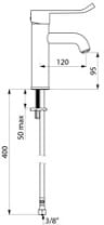 SECURITHERM Bateria do umywalki z regulatorem ciśnienia , L.120 mm uchwyt Higiena , bez ciągadła i korka